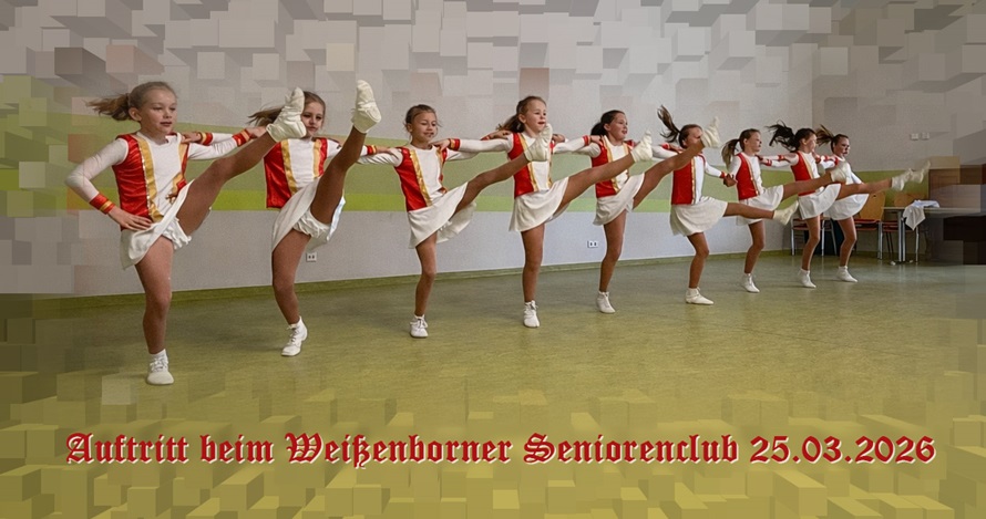 Am 25.03.2025 durften wir die Nachmittagsveranstaltung der Seniorengruppe Weißenborn im Bunten Würfel in Weißenborn mit einem halbstündigen Programm unterstützen. Gewünscht waren viele bunte Kostüme, und wir hoffen, diesem Wunsch ordentlich nachkommen zu sein. Gegen 16 Uhr startete unsere Vorstellung mit der Jugendgarde, die nochmals in alter Besetzung den Gardetanz der letzten Saison präsentierten. In ähnlicher Besetzung waren die Mädels zuletzt auf der Sächsischen Meisterschaft aufgetreten. Im Anschluss zeigten vier Mädels der Juniorengarde ebenfalls den Gardetanz der letzten Saison. Nach den beiden Gardegruppen tanzten die Fitnesskids den Vereinstanz „Hoch“, mit dem wir unsere Verbundenheit zu Tanz und Gemeinschaft weitergeben. Eine kleine Reise durch Frankreich präsentierte die Showgarde mit ihrem aktuellen Showtanz. Im Anschluss zeigten die Showkids, die schon teilweise in neuer Besetzung auftraten, den Cowboy- Showtanz. Zum krönenden Abschluss kamen nochmals alle Tänzerinnen auf die Bühne, um den ganz neuen Vereinstanz zum Lied „Wir tanzen den Regen weg“ zu zeigen. Wir schauen mit einem großen Lächeln auf diesen Auftritt zurück und freuen uns, allen eine kleine Freude gemacht zu haben.