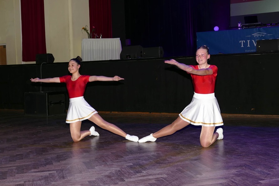 Beweglichkeit, Ausstrahlung und Disziplin – diese 3 Eigenschaften stehen für das Training unserer Tanzmariechen im karnevalistischen Tanzsport. Jede Woche werden im gemeinsamen Training am Dienstag im Jugendclub Berthelsdorf von 16:30 – 18:00 Uhr Ausdauer-, Kraft- und Dehnungsgrundlagen trainiert, sowie die Grundelemente des karnevalistischen Tanzsports für Tanzmariechen. In den Einzeltrainings am Freitag erlernen unsere Mariechen zu verschiedenen Trainingszeiten und wechselnden Räumlichkeiten ihre individuellen Choreografien. Zurzeit besteht das Solistenteam aus unseren 3 Mariechen Vanessa, Annabell und Lilly und unserem Tanzpaar Marie und Lisa, welche von den Trainerinnen Joleen und Luisa trainiert werden.