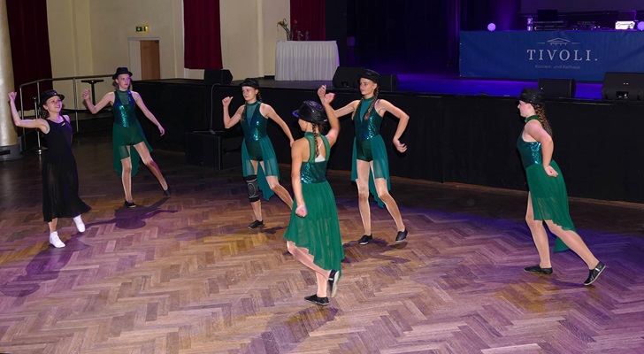 Die Showgarde eröffnete in großer Zahl das halbstündige Tanzprogramm mit ihrem 20er-Jahre-Tanz. Im Anschluss zeigten die Moderndancer ihren aktuellen Tanz in bunten Hosen. Nach den beiden Showtänzen präsentierten wir Gardetänze mit dem Duo Marie und Lisa und dem Solo Lilly. Lilly vertanzte dabei sowohl das Medley als auch ihren aktuellen Turniertanz. Nach der klassischen Musik entführte die Showgarde die Zuschauer nach Frankreich ins Theater. Passend dazu vertanzten die Moderndancer einen Tanz aus ihrem Repertoire. Zum Ende hin wurde es wieder mystisch und die Junioren zogen die Zuschauer in eine geheimnisvolle Welt. Den großen Abschluss machte ein Vereinstanz, bei dem alle Tänzerinnen gemeinsam auf der Bühne standen.