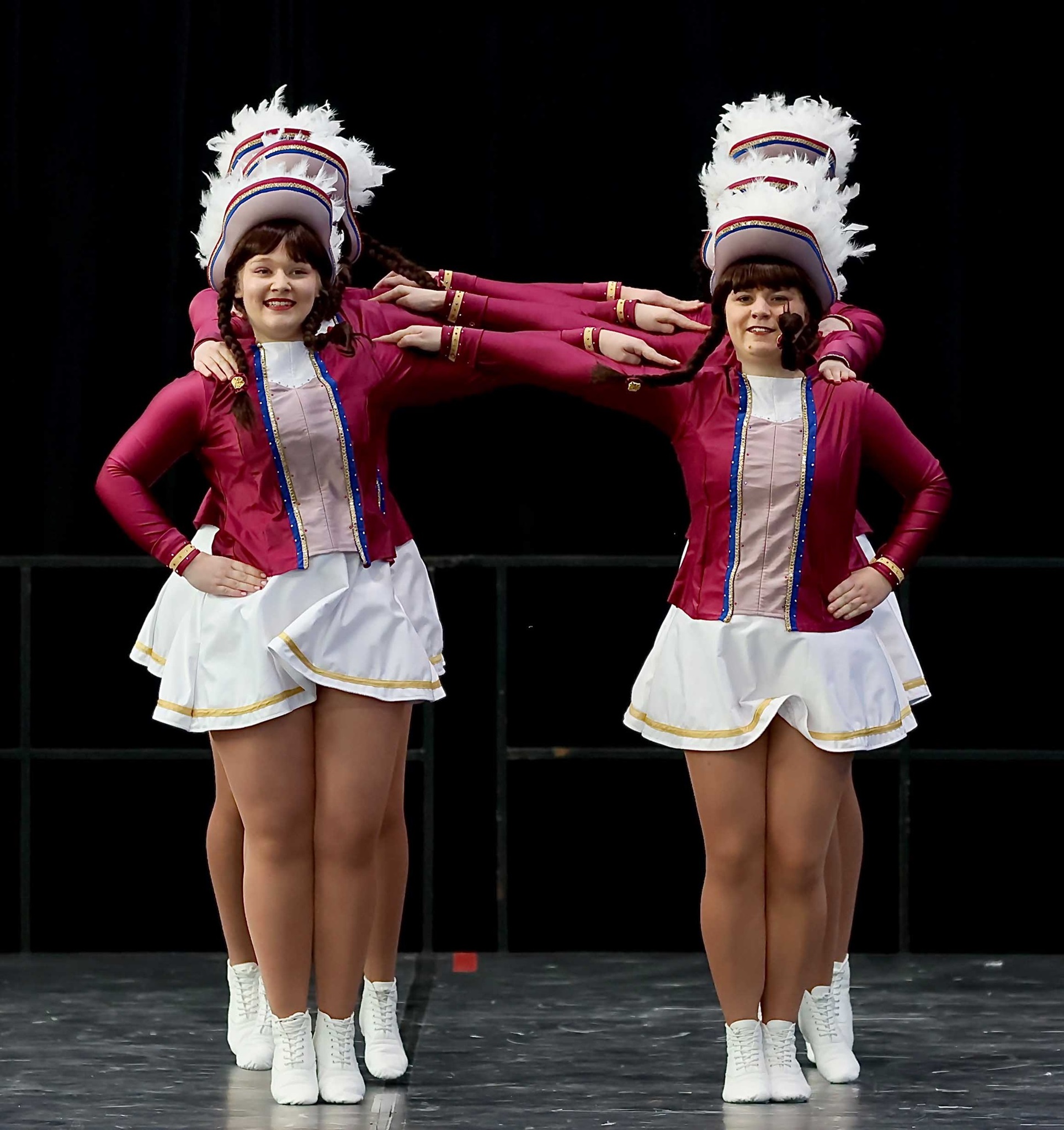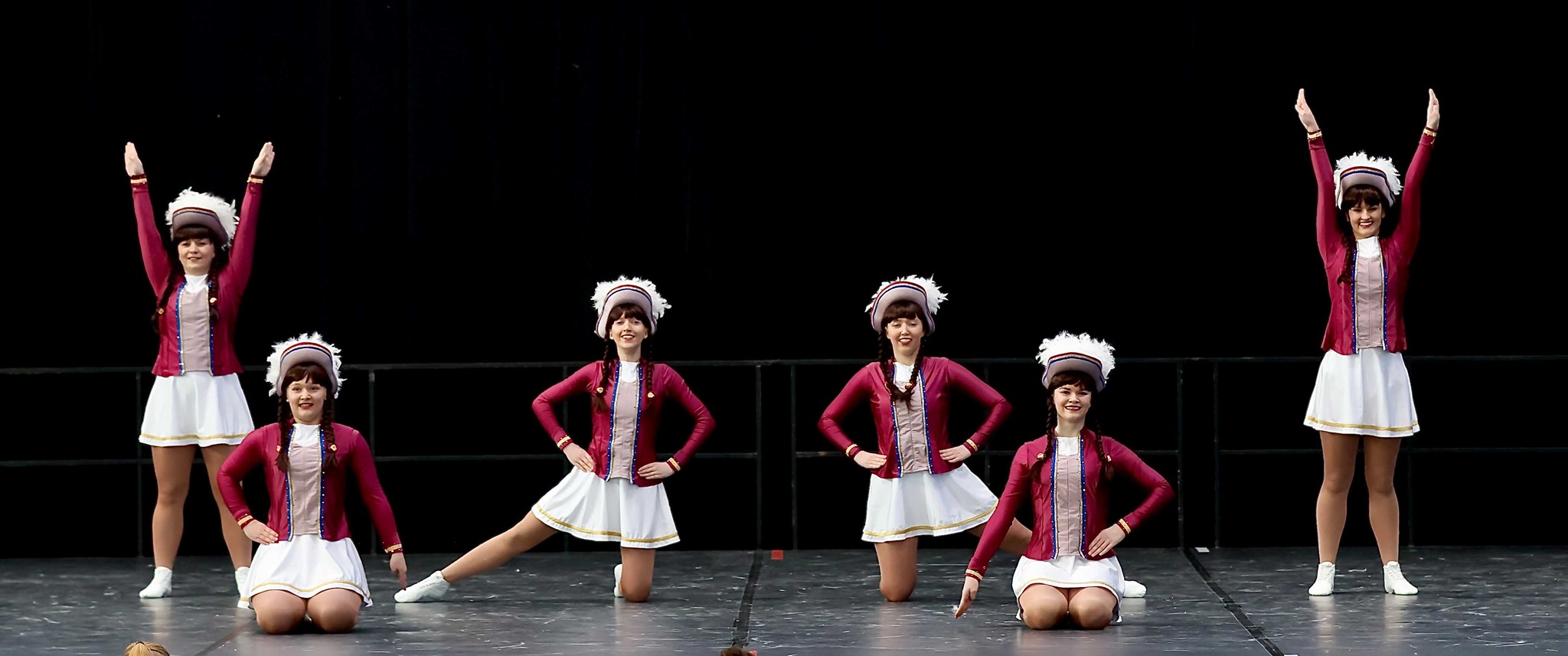 Als 6. Garde durften wir direkt am Anfang auf die Bühne. Unser kleiner Fanclub war ebenfalls in der Halle und feuerte uns kräftig an. Der Aufmarsch war nicht ganz fehlerfrei und auch das erste Tanzdrittel war von kleineren Schrittepatzern gezeichnet. Dafür verlief der restliche fast Tanz fehlerfrei. Alle Elemente wurden ausgeführt, wenn auch die Ausführung von den Grätsch- und Spagatsprüngen etwas an Höhe verloren hatten. Im Abschlussbild konnte dann die Anspannung aus den Gesichtern weichen und die Punktevergabe sehnsüchtig abgewartet werden. Am Ende erlangten wir eine Gesamtpunktzahl von 338 Punkten und damit den 23. Von 24 Plätzen.