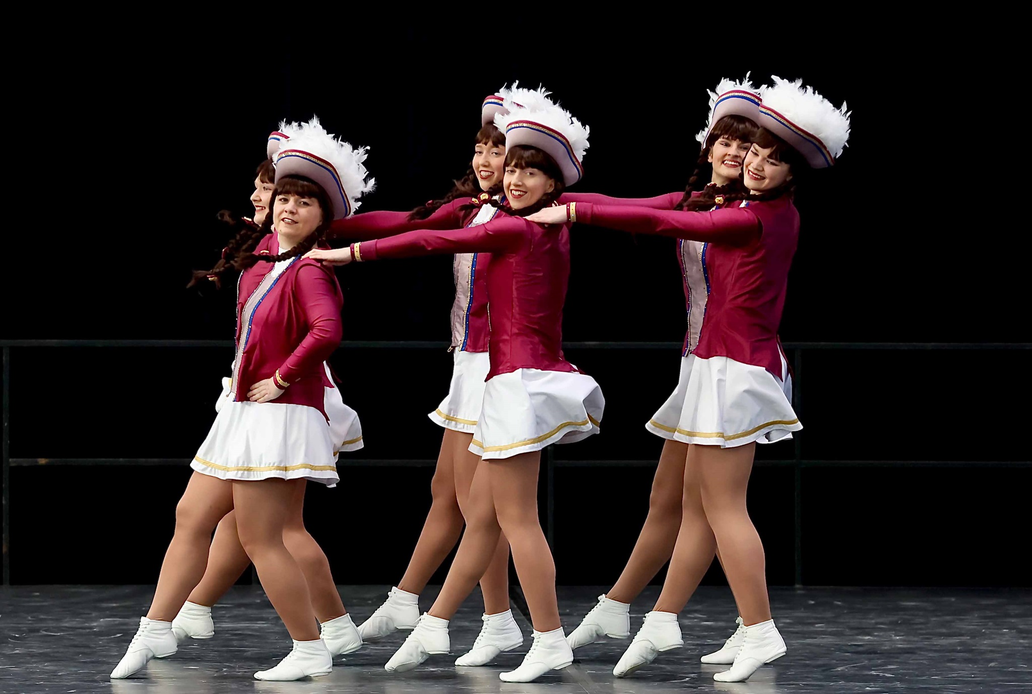 Als 6. Garde durften wir direkt am Anfang auf die Bühne. Unser kleiner Fanclub war ebenfalls in der Halle und feuerte uns kräftig an. Der Aufmarsch war nicht ganz fehlerfrei und auch das erste Tanzdrittel war von kleineren Schrittepatzern gezeichnet. Dafür verlief der restliche fast Tanz fehlerfrei. Alle Elemente wurden ausgeführt, wenn auch die Ausführung von den Grätsch- und Spagatsprüngen etwas an Höhe verloren hatten. Im Abschlussbild konnte dann die Anspannung aus den Gesichtern weichen und die Punktevergabe sehnsüchtig abgewartet werden. Am Ende erlangten wir eine Gesamtpunktzahl von 338 Punkten und damit den 23. Von 24 Plätzen.